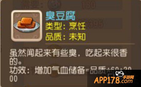 在没有学习各种生活技能之前,活力只可以用于打工和做同心结,性价比很低由于在手游中活力的恢复只取决于玩家活跃度的多少,所以大可在帮派学习了相关技能后再消耗活力。而如果你一开始就选择了烹饪技能,那么臭豆腐就是你学到的第一种烹饪。10品质的臭豆腐就能为你恢复400点HP储备,看似不多,但是一开始玩家自己的HP也不多,加上低级烹饪对活力消耗也少,因此也是红罗羹之外一个可靠的HP补充手段。