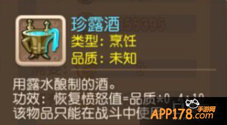 效果:恢复愤怒值=品质*1,降低3~4回合的物法防御