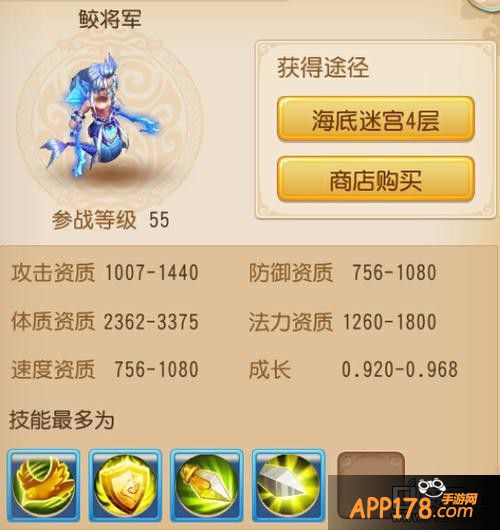 鲛将军洗满技能是4个,但是如果你想要洗出4技能的鲛将军也是一件非常不容易的是,鲛将军的鞋带技能分别是敏捷、防御、偷袭、突进。敏捷技能是有先出手的机会。防御技能能够减免物理输出给宝宝造成的伤害。偷袭和突进都是倒是给鲛将军加分的重要一点。鲛将军看似一般,实则能攻能守。不过55级这个等级毕竟是过渡的一个等级,有这样的宝宝基本上能够满足这个等级任务和活动的需求了。