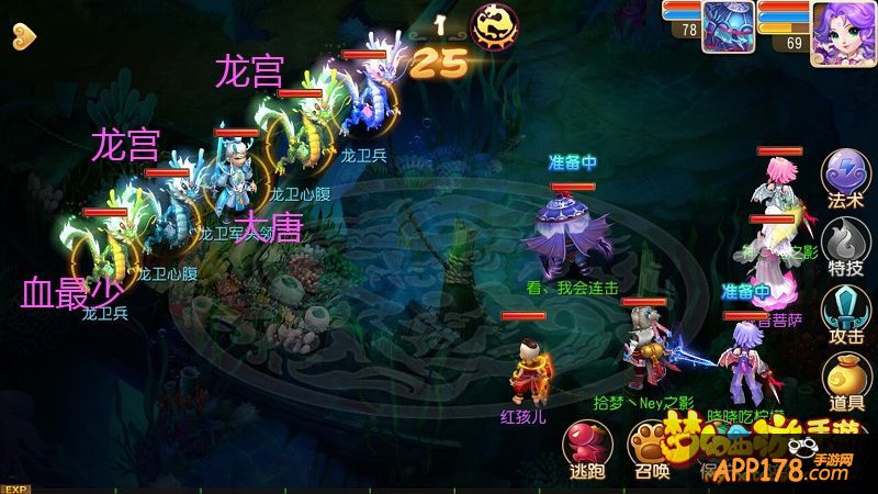 第二回合就集火二龙宫之一,首要目标就是把龙宫打死。如果在这期间,你的观音被大唐扫死了,你就赶紧跑吧。