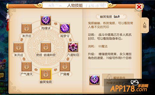 幽冥鬼眼,提高队友抗封印并可以看隐身单位