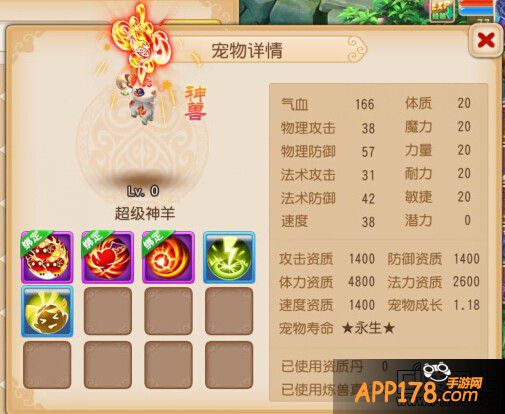 羡慕嫉妒恨完,我们也可以在图中发现,超级神羊应该是定位在法宠一系,法攻资质惊人的2600,已经是问鼎目前游戏第一宠的存在了。