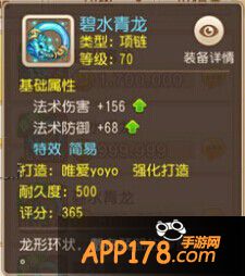 点评:简易装备就是给69的携带的,在没有无级别的情况下。这条156法术伤害的项链跟一线水平基本上没有差距了。适合的门派也就只有龙宫,毕竟追求法术伤害的门派,从目前来看非龙宫莫属了。
