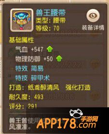 点评:气血值差不多已经爆了,而且还带了2个特效,这件装备69的辅助门派带还是非常不错的。简易加碎甲术的效果让一线的法系门派气血加成不少,在辅助需要携带愤怒的前提下,这件装备也就只适合法系门派携带了。