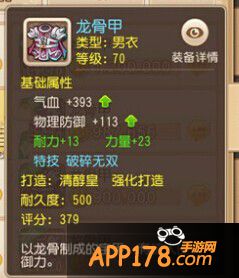 点评:相当养眼的属性加成,而且还携带了一个破蓝的特技,可惜的是这件衣服没有简易特效,要不然肯定是一线69玩家所追求的。23的力量加成而且还携带了一个破碎无双。即使玩家等级到了80级,也能够一直使用。