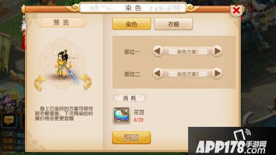 当玩家有20个花豆的时候,绝对任性一番,染个衣服。这里小编同样推荐衣服部位的“染色方案3”。黄灿灿的跟金碧辉煌的龙宫有异曲同工之妙。