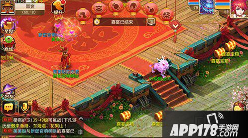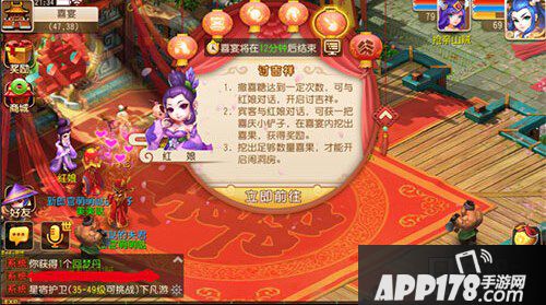 闹洞房:讨吉祥的喜果到达一定数量,即可开启闹洞房玩法。宾客花费一定数量的金币、银币,即可大闹洞房,获得相应奖励。注意,闹洞房时,有可能被热闹的宾客踩成猪头哦。