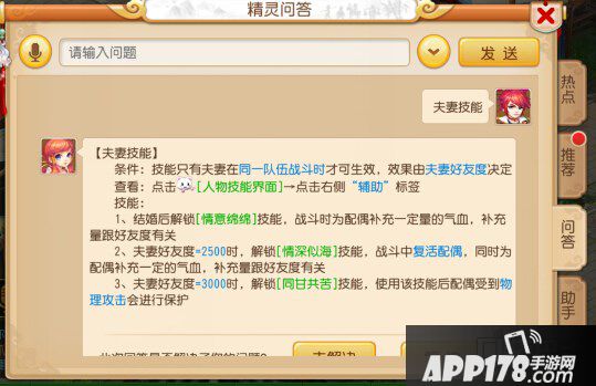 1、结婚后解锁【情意绵绵】技能,战斗时为配偶补充一定量的气血,补充量跟好友度有关。