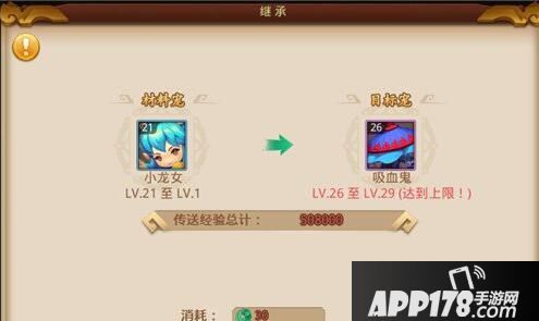 3、转移经验,会效果相应数量的仙玉,根据材料宠的等级来决定。