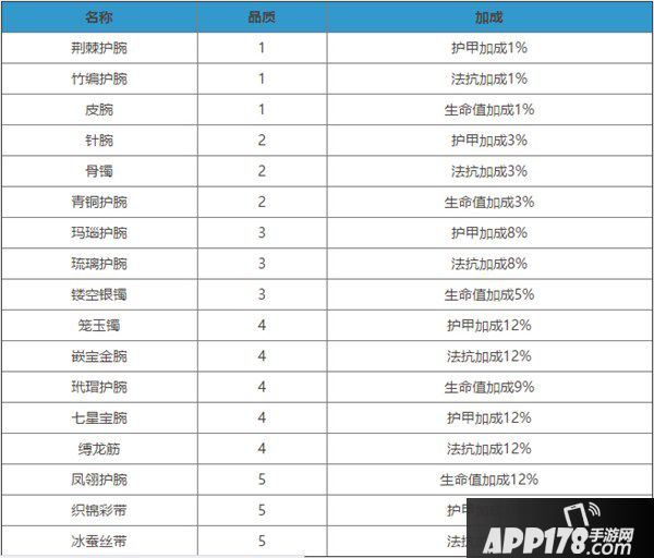 护腕主要是加强属性:生命、护甲、法抗。