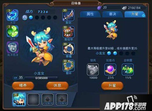 召唤兽升星在不同星级需要的原料是不相同的,比如在蓝色二星升蓝色三星的时候需要10000银两,5枚如意丹,5个金柳露,这些是比较容易获得的,后期则需要一定量的对应召唤兽的魂魄,以及超级金柳露等原料。