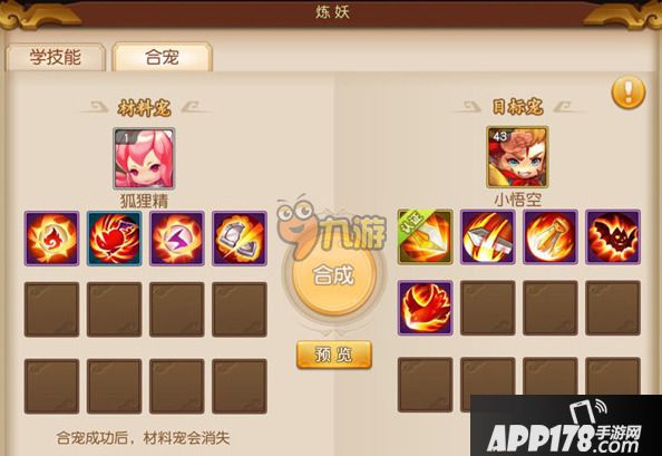 (1)材料宠与目标宠的位置切记不要放错,最后合成出来的宠物必然是目标宠,而且材料宠将会消失!