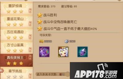 重点来了,首先游戏的普通副本是只要你过了前面的,就能开启后面的,也就是说哪怕你只有40级,你都能打通13章副本。而且是单人的副本过了就能开启下一章。而精英副本是靠星星数量开启的。有了花妖,打副本难度会降低很多很多,普通副本并不难,花妖要用好,一定不要让BB挂掉,在BB被BOSS打的时候一定要记得收。每一关普通副本一定拿到3星。