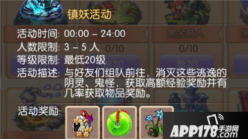(2)镇妖活动为组队活动,玩家需要通过组队凑成3人(含3人)以上队伍,空余队员由队长仙侣补齐。