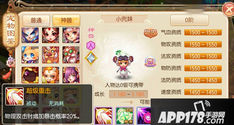 不过在我个人看来这只小兜妹在学习技能时还是有很大的局限性:大多超级技能的学习虽能提升评分,但拥有这么多状态技却对小兜妹的防御能力造成了很大的影响,即便小兜妹的神兽属性资质要高于游戏中的普通宠物,但是在没有特定加成以及防御技能的帮助下,小兜妹想要在战场中拥有比较高的存活率还是很困难的,所以神兽小兜妹在实战中并不能给对方造成特别大的伤害。