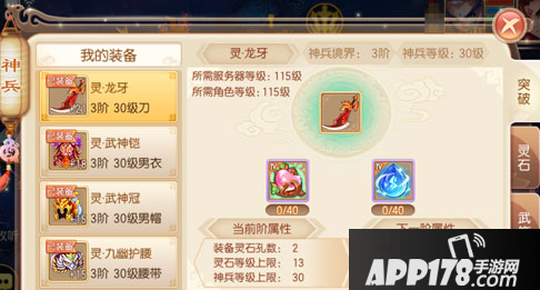 不过就算装备突破不怎么消耗经济,但在突破过程中我们还得注意一点——那就是装备的突破方式选择:在给装备进行突破时,不仅每提升一级都能获得定额的属性增长,突破阶级时还能增加灵石镶嵌槽以及灵石等级上限(另一种获得属性加成的途径),因此在进行突破时建议逐一提升(切勿雨露均沾),至于突破顺序建议为武器→鞋子→护臂→头盔→衣服/腰带。