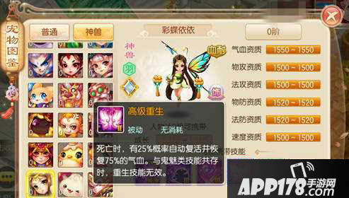 高级重生:这个技能是彩蝶依依的被动技能,在死亡时有25%的概率复活并获得75%的气血。但是要注意的是如果和鬼魅灵技能共存时这个技能会无效。但还是改变不了这个技能逆天的存在,让彩蝶依依成为一个能抗能打的存在。怒火:法术攻击会造成10%的暴击,可以搭配它的另外两个技能使用。