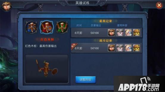 红色木桩试炼,可以用来检测战队中英雄的伤害输出能力。每次战斗结束时伤害输出的数值都会被记录下来,玩家可以通过不断地试炼来看到自己的成长。