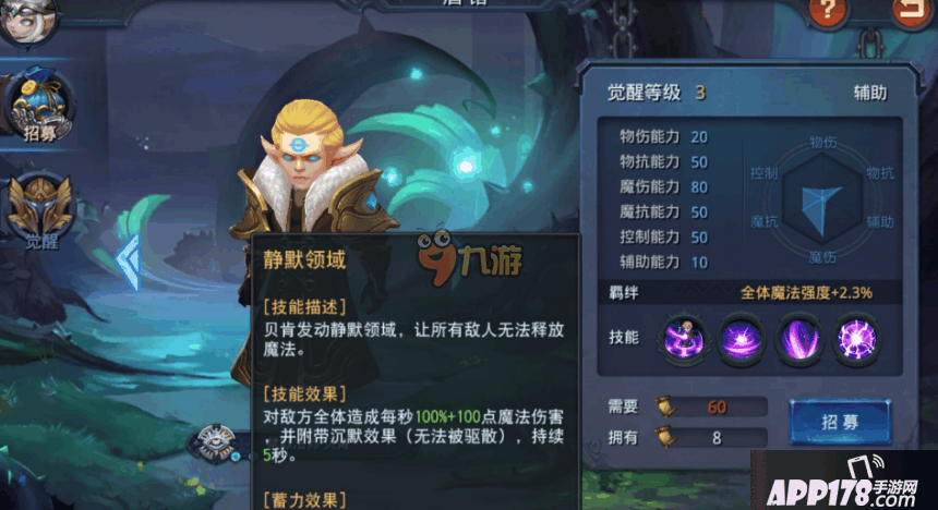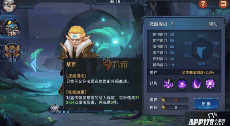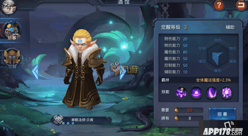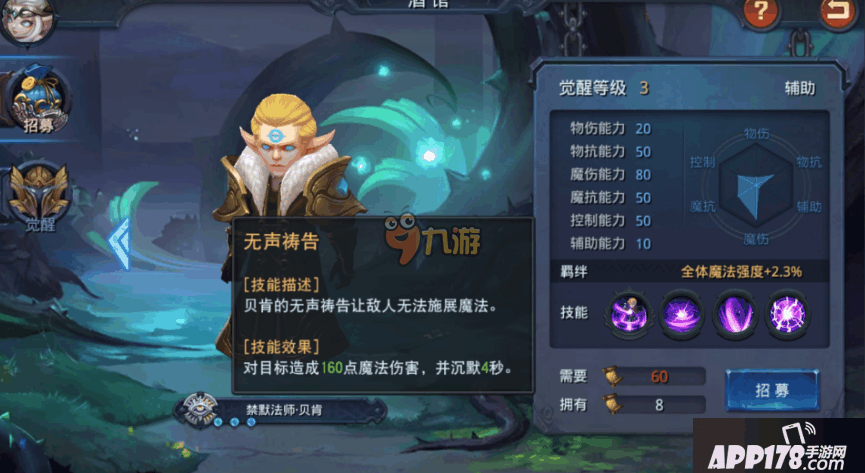 作为辅助型魔法英雄贝肯在迷雾世界的PVP中出场会比较的高,一招制敌成为他的强项,但是新手在前期的时候可能对他的技能和属性都不是很了解,不过APP178手游小编在接下来将会为大家详细的介绍迷雾世界禁默法师贝肯的属性技能介绍,各位小伙伴们一起来看看吧!