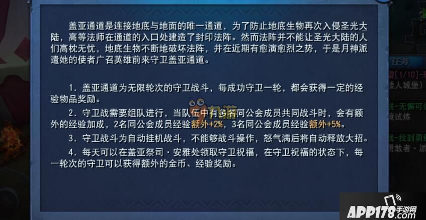 守卫盖亚是一种无限轮次的自动挂机守卫战斗,也就是说我们可以在这里无限挂机,每次守卫成功都会获得一定的经验和奖励,简直是懒人福音!