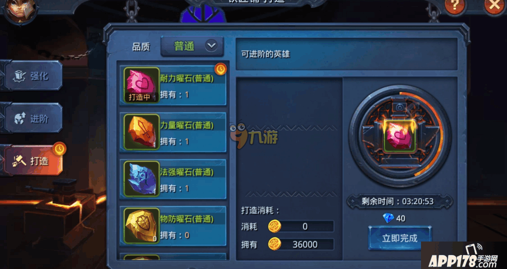 玩家在可以在游戏中自己进行打造曜石,但是要注意的是不同阶层的曜石打造所需的时间和金币也不同。