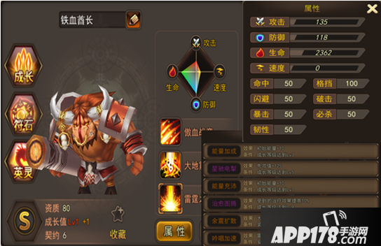 守护符石使大牛的每过几秒额外获取一次能量,配合超短的技能CD刷新,主要用于增加技能出手机会,“龙骑士”英灵主加防御和血量,让大牛拥有更耐抗的体质,雷打不动,屹立不倒!