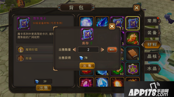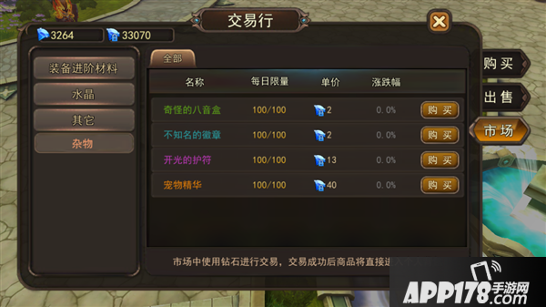 市场是回收玩家闲置物品的地方。在《魔灵幻想》中,常见材料都可以直接出售到市场,玩家获得钻石。