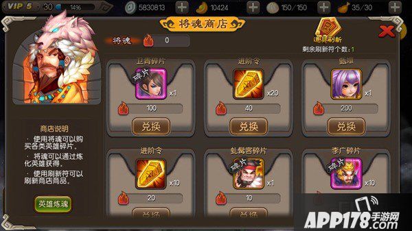 使用将魂可在将魂商店中购买各种英雄碎片,商品列表可以使用刷新符刷新。