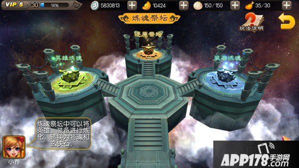 炼魂祭坛可以将英雄、装备进行炼化,转化为将魂和玄铁石,分为炼魂和还原两种祭坛。PS:所有已上阵英雄和装备及宝物不能直接进行炼魂和还原,需卸下后才能进行炼魂和还原。