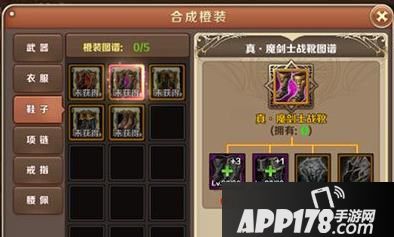 首先大家可以从上图中看到这个是橙装备合成界面,目前橙色装备是最好的了,当然也不排除以后出现更好的装备了。现在这个时代橙色装备还是非常稀少的,其中有一些玩家还在带绿色装或者是蓝色装备。合成橙色装备最重要的时候材料和实际,上面是真魔剑士的装备就是这样子的,合成需要诸多材料。