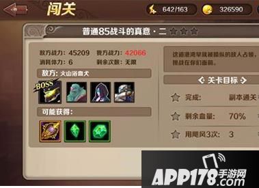 敌方的战斗力已经高于4W5了,而我方的战斗力才4W2,在战斗力方面就处于弱势。进入这个副本消耗6点体力,关卡挑战次数无限,前提是有体力才行。此副本怪物有火山淤血犬、独眼巨人、魅惑女巫、小巨人。通关这个副本有几率获得橙色的魂器、另外还有星陨石碎片以及星陨石。