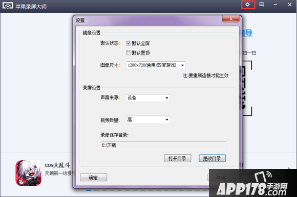 安装完之后,先打开录屏大师,进行视频的参数设置和保存目录,调整好自己需要的参数后,我们开始连接吧。