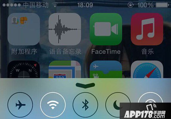 在 iPhone 的主屏上用手指在屏幕底部向上滑动,在控制中心界面里,点击“AirPlay”选项。