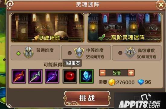 当贵族等级达到3或以上,灵魂迷阵副本可多倍收益。