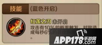 攻击有10%的概率触发,对敌造成每秒6%的普攻伤害,持续3秒(1级),技能升级提升伤害百分比每级+3%。同套装备叠加伤害百分比。