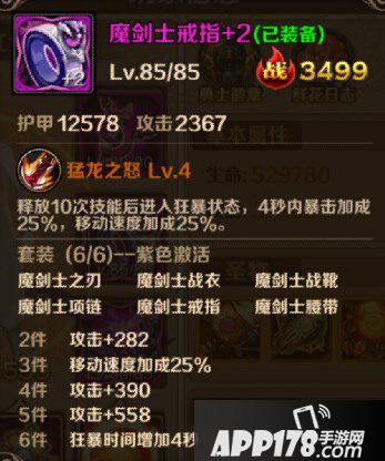 魔剑士装备是目前路西法最好的装备,无论是PK还是刷图中的表现都极为出色,玩家可以利用魔剑士套装的移动速度在PK中更好的走位,而特有的暴击在刷图和PK中的作用也不小,特别是6件魔剑士后狂暴时间延长4S,再加上本来的4S,当装备特效触发后,路西法拥有8S的时间可以进行极限输出,如果在PK中恰巧在此时打了对手一套基本就稳稳带走了,刷图时遇到难打的BOSS也可在狂暴时间内迅速斩杀。