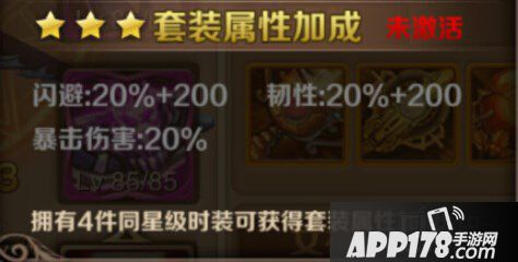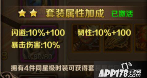 两星时装的套装效果虽然属性和三星的一样,但是数值仅为三星套装的50%,不过聊胜于无,小编建议还没有凑齐四件时装的玩家抓紧时间把时装攒齐,不要因为不喜欢某件时装就选择不买,四件后的套装属性虽不及3星但也是相当不错的。