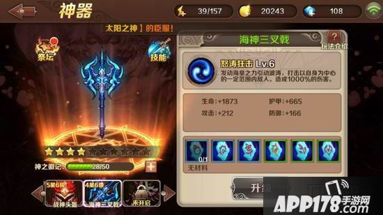 符文有很多种,每件神器最多镶嵌6种符文,当一件魂器镶满6种符文之后就可以进行升级,升级后的神器需要镶嵌新的五分(口袋小编表示这简直是无底洞,每天的体力大多用来刷符文了有木有!)