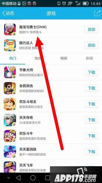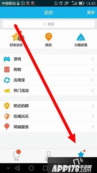 首先我们先打开手机QQ,切换到动态界面(就是要点击进入QQ空间的界面)选择游戏,如下图