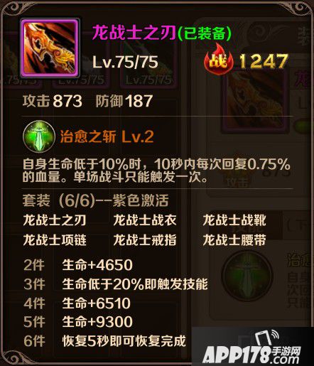 编辑点评:龙战士套装是标准的血装,套装技能是回血,套装属性是加血,相对于可以复活的副本来说,PK场更加适合这套装备。6件套累计至少可以提供三分之一的回血量,而且套装属性本身也提供了20000多的血量,更大大增强了生存能力,很可能最后的回血成为压倒胜利最后的稻草,并且6件套的套装属性不但减少了5秒的回血时间还提高了10%触发上限,更有效的防止被对手在回血时间内强杀的概率。