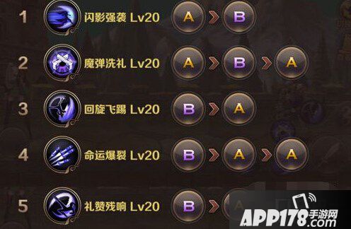 在达到20级练功后即可解开大师模式。大师模式中只有A和B两个攻击键,以及一个跳跃键,女神拥有的所有技能都能通过A、B组合键来实现,如下图所示为各技能对应的按键组合: