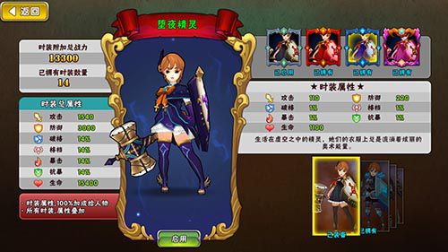 既然取景中世纪,人物着装风格也吻合时代特征。在《魔女骑士团》中,为游戏可选的三大职业人物准备了共计百套皮肤组合。并细分为盔甲类、洋装类、天使/恶魔类等。