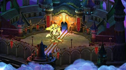 游戏场景大量运用3D渲染技术,无论是孤高清冷的弯月,薄雾萦绕的僵尸小镇,还是黑白象棋格铺就的竞技场,孤寂的穹顶教堂,整体氛围凝重而肃穆。《魔女骑士团》采用好莱坞级镜头捕捉技术,精密捕捉场景细节,营造出魔幻现实主义特殊气氛。