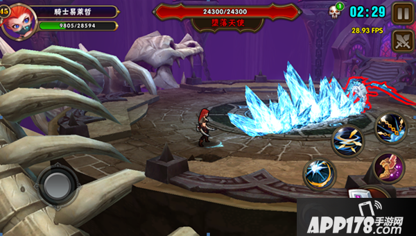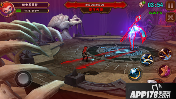 此类副本推荐使用契约挑战或者手动战斗,副本难度较高,boss是堕落天使。Boss总共有四种特殊攻击行为,开场周围四处放冰柱需要躲避,大型AOE,前期攻击不能太贪,注意收手,利用滑步快速躲开,第二种就是下图中的蓄力定身技能这个一定要记得躲开,如果远距离被定身到,boss还会利用闪现技能闪到人物身边攻击,还有一种就是远距离丢冰弹,冰弹好躲,但是需要躲避冰弹的同时攻击boss就要看时机了。