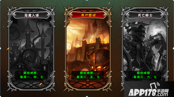 当你获得一件属性不错的装备时就需要强化装备以此来获得更高的属性加成,而强化所需的材料强化石试炼中黑暗之门副本每周可以根据不同时间进入不同的副本挑战获得,副本的不同只是掉落的饰品不同,恶魔入侵掉落项链,丧尸围城掉落戒指,死亡骑士掉落魔典
