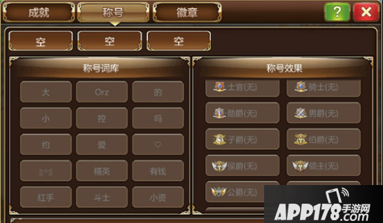 称号就是特定的称谓词组,在幻想中可获得词组卷轴,打开词组卷轴后可随机获得称号词组。装备也有称号,装备获得的词组,可显示于头顶之上,稀有词组可通过稀有成就获得。积分商城可兑换特定称号,酷炫特效。每个不同的称号,对应着特定的称号效果,具体可以在游戏中参看。