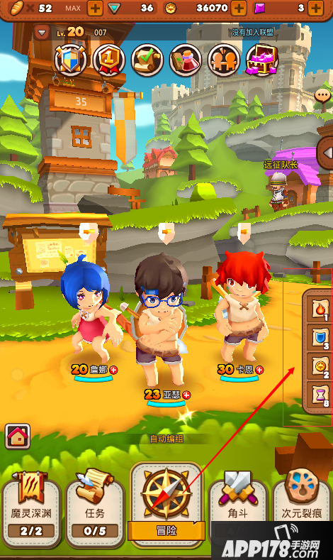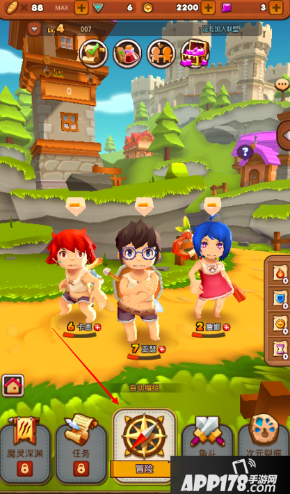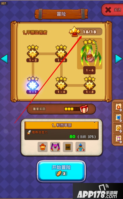 游戏中点击“冒险”可直接进入冒险副本进行闯关。每个冒险地图中分5个小副本和1个BOSS副本。