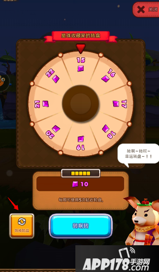接下来与"星珠收藏家"聊天,就会跳转到道具转盘的界面,小伙伴这时会有疑问,说好的钻石转盘在哪里啊?别着急,魔灵酱现在就告诉你在哪!大家可以看到新版本更新后,道具转盘的左下角会有"转换轮盘"的按钮,大家只要点一下就可以切换到钻石转盘的活动界面拉,看上图看上图看上图!
