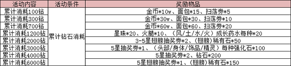 活动内容: 活动期间,累计消耗指定钻石数,即可获得超多刚需物品,快来参与吧!