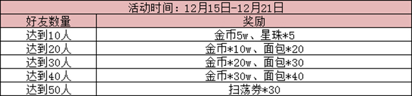 活动内容:活动期间,游戏中的好友数量达到指定数量,即可获得丰厚的刚需资源!